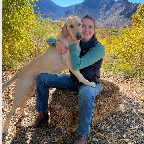 Born and raised in Grand Junction, Baylea married her high school sweetheart in 2018. She earned an associates degree in horse training and management. She has a history of working with large animals and owns horses, mules, cows, and 5 dogs. Here she is pictured with her dog, Chip.