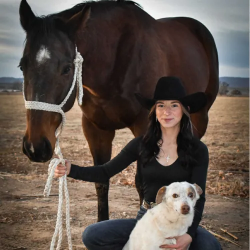 Abbie has been around animals her whole life, including large and small animals. Abbie enjoys competing in barrel racing with her horse, Tulsa, and traveling to rodeos across the western United States.